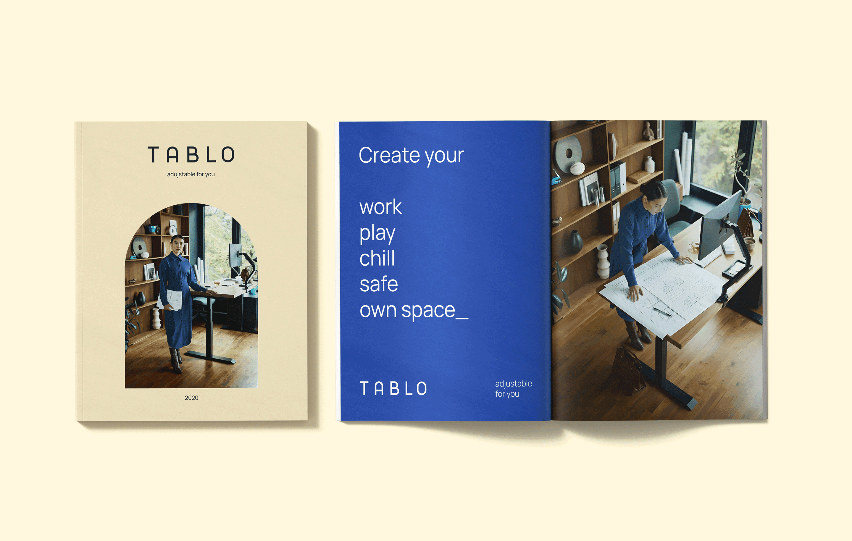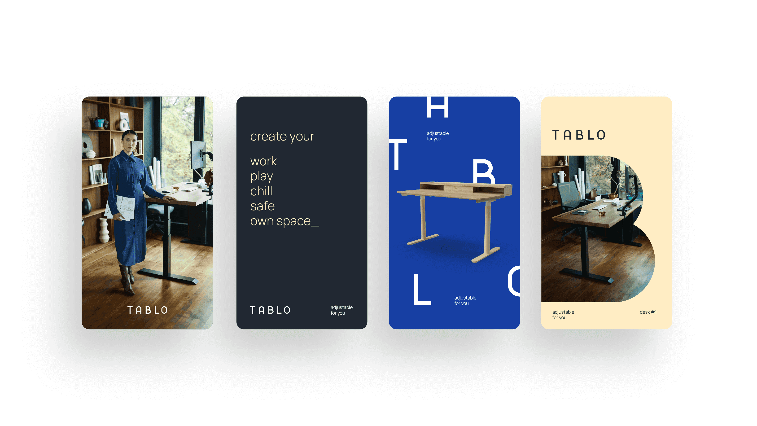 With the desk being a beautiful addition to any space, combined with the fact that the user could set it to his/her preferred height – every desk would be a unique element in one’s setting. Resulting in the pay-off: “Tablo - adjustable for you".