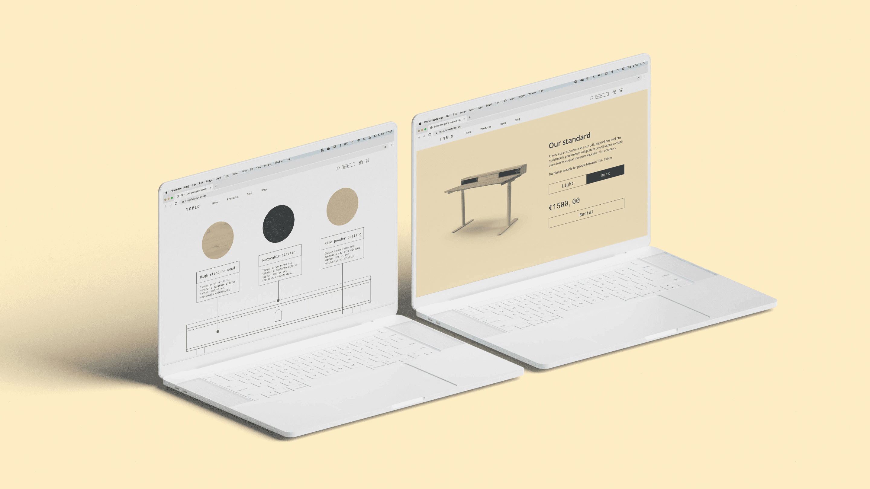 The idea of Tablo was very simple. In the first phase of the development, consumers would be able to choose a desk, with only two options in colour. In the second phase, consumers would have more options to choose from, including several accessories, like a docking station, or built-in cabinets. Aside from that, an important part of product, was that the design should be quite minimal, being able to easily stand in any (home)office or room. So no matter the interior, or surrounding, it could always slip into the surroundings.